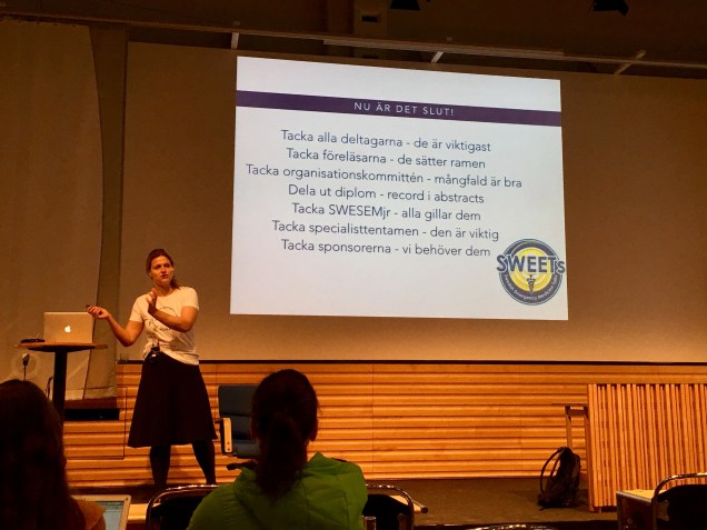 Avgående ordförande i SWESEM, Katrin Hruska, tackar alla som gjort SWEETs17 möjligt.