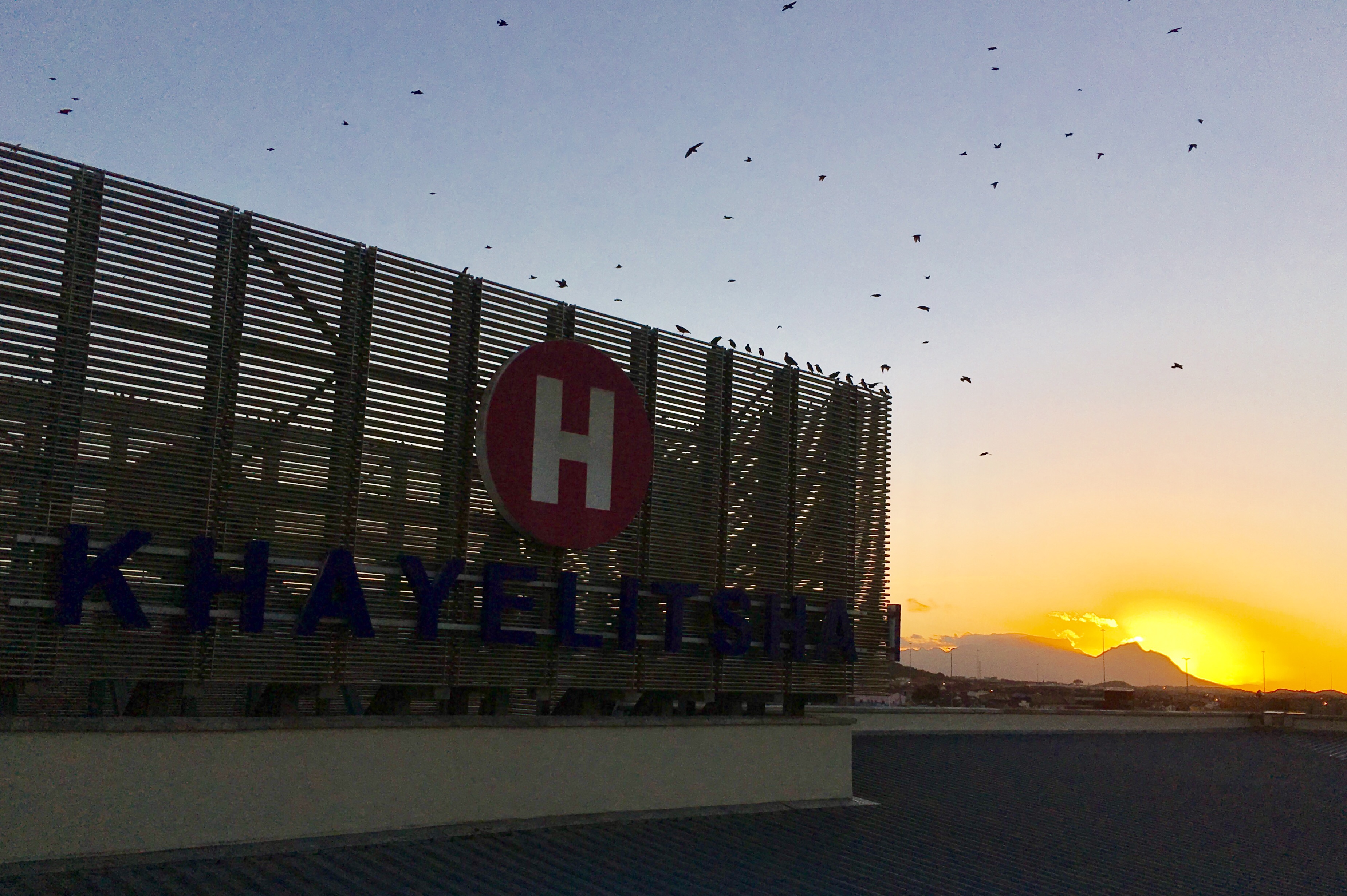 Soluppgång från taket på Khayelitsha district hospital.