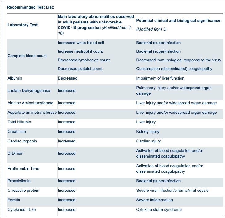 • D-dimer >1,5 hade, i en kinesisk studie 88% specificitet för trombos och >3 hade 96% specificitet. Överväg terapeutisk dos antikoagulantia till patienter som ligger över dessa nivåer.